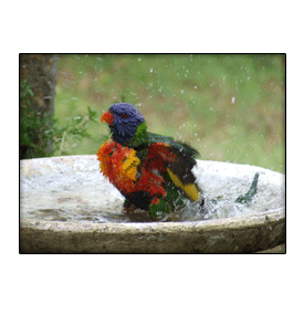 Birds, like any living creature, vary a great deal in the ways that they choose to bathe. Some birds love the feeling of a trickling shower, while others prefer to stand in a fine mist. Some birds like to dunk themselves in a pool of water. Try these different techniques at home with your pet to see which works the best for him.