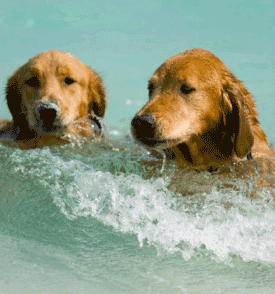 There are some breeds that love to be in the water, such as Retrievers and Labradors. However, it is important to remember that even these "water dogs" can have trouble if they are elderly, sick, or overweight and out of shape. Fatigue can set in quickly, and no matter how good a swimmer they are, they may tire out and be unable to stay afloat. Like their human counterparts, many dogs lead a much more sedentary life style these days, and gasping for breath while in water is not a good way to assess their fitness level.