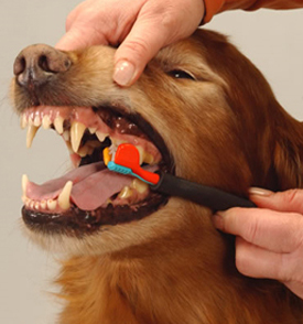After your pet has a thorough dental cleaning, it is important to begin and maintain a regular routine of good dental hygiene at home to prevent future problems. Dental care that is begun when your pet is very young, will be much easier when your pet gets older, simply because he will become accustomed to the routine and consider it a normal part of his life. When should I start brushing my pet's teeth? The younger your pet is when he's introduced to tooth brushing, the more easily he will accept the procedure. Ideally, you should begin brushing when your puppy is between 8-to-12 weeks old. Like any good habit, it's never too late to start.