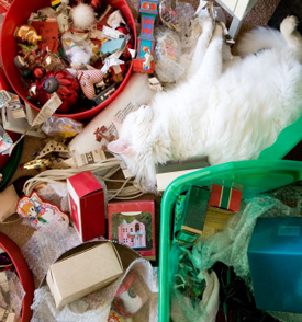 Check your ornaments every year before you use them on your tree. Cracked and worn ornaments will be easier for a curious cat or excited dog to break if they get a hold of them, so discard these immediately. Keep ornaments out of reach of pets. Ingestion of any ornament, which might look like toys to pets, can result in life-threatening emergencies. Even ornaments made from dried food can lead to ailments. And remember, shards from broken glass ornaments can injure paws, mouths and other parts of the body.
