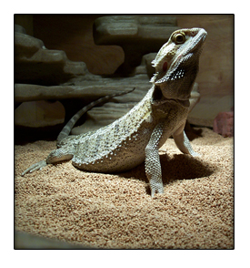 The substrate for the cage can be paper towels, aquarium gravel, commercial calcium sand, pebbles, reptile carpet, or play sand. Play sand is an inexpensive, natural-looking substrate good for all but baby bearded dragons. Your pet lizard will also need a food bowl, smooth insect bowl (for mealworms, etc), and water dish. Dragons need a hide area like a cave or log. There are many natural-looking commercial shelters available. Sturdy branches, logs or rock formations are needed to keep your pet happy because bearded dragons like to climb and bask up high. You just have to make sure that the climbing areas are secure and won’t fall and hurt your dragon. You can add artificial plants and decorations to your animals home as needed to create a more scenic habitat.